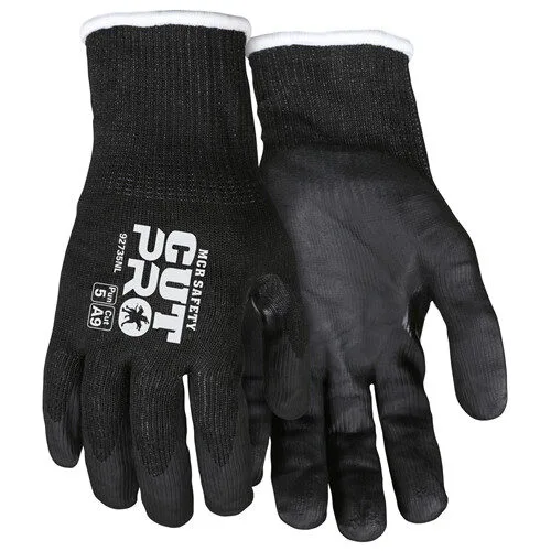 The MCR Safety Cut Pro  Series offers various cut protection levels at a competitive price. The 92735N features a 15 gauge plaited black Hypermax and steel shell. The shell is coated on the palm and fingers with soft black nitrile. The 92735N scores a top of the chart” ANSI cut A9. The reinforced thumb crotch provides extended use in a high stress area. The black color hides dirt and grease to keep the gloves looking good longer.  The nitrile coating provides the user with excellent gripping power.  This glove also provides excellent puncture and abrasion resistance.  Looking for the best cut resistant gloves?  Look no further than MCR Safety’s Cut Pro options.