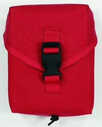 Designed to securely hold your first aid kit. This modular first aid pouch has an outside zippered pocket and a top zippered main compartment with elastic loops to hold your medical gear. Front hook-n-loop area perfect for your blood type tag or a unit tag. This pouch is empty -– you have to add the contents of the kit yourself.
