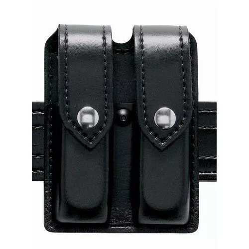The Model 77 Double Magazine Pouch is designed to carry two magazines on a 2.25 (58mm) duty belt. The 77 features both vertical and horizontal belt slots, allowing it to ride in either a vertical or low-profile horizontal position. A magazine tension screw located between the two pouches allows for easy retention adjustment. It’s constructed of rugged SafariLaminate and is available in several scuff-resistant finishes with four different closures.