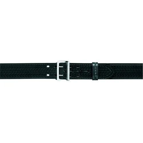 This Model 87V Sam Browne duty belt features SafariLaminate construction with a hook lining. Designed for use with a loop lined underbelt such as the Safariland Model 99. This four-stitch design has the Sam Browne-style double tongued buckle and center belt stud to fasten it firmly around the waist. 2.25 (58mm) width. Available in Plain, Basketweave, Hi Gloss or Nylon-Look finish. Choose brass or chrome buckle.