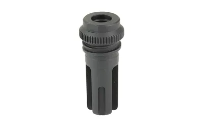The AAC BlackOut Flash Hider for 51T mounts is an extremely efficient design that effectively eliminates muzzle flash, even on short barrels. The open-end, 3-prong design of the BlackOut is inherently stronger than 4-prong units and is not subject to the wear and erosion commonly encountered with closed-end designs. All of their BlackOut flash hiders are machined from high strength aerospace steel alloy and coated in a hard, durable, corrosion resistant SCARmor finish.