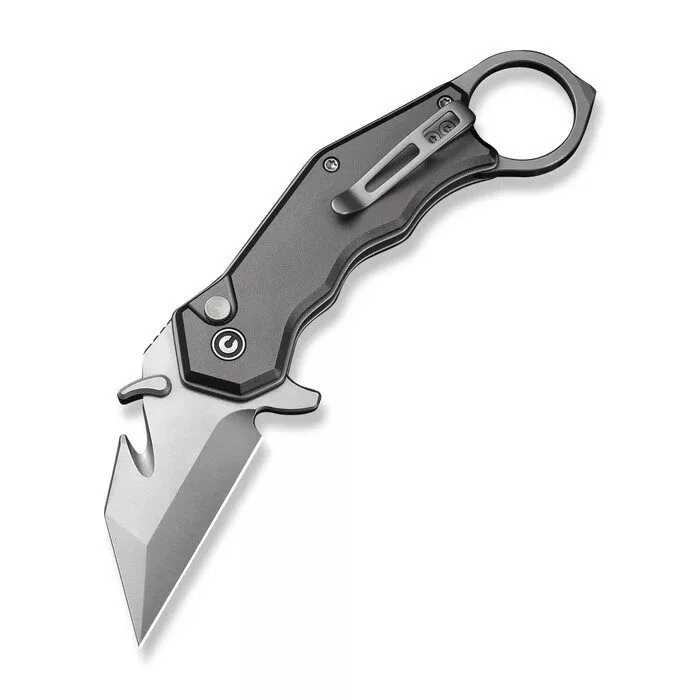 Introducing the Amaroq knife, model number C24018-1, a versatile and robust tool designed by the esteemed Tony Sentmanat. Compact yet powerful, this knife features an overall length of 6.73 inches and a 2.11-inch reverse tanto blade made from high-performance Nitro-V steel, ensuring exceptional edge retention with a hardness rating of 59-61 HRC. Enhanced with a guthook, the blade’s flat grind and satin finish deliver both functionality and style for every adventure. The lightweight aluminum handle, finished in a sophisticated gray, provides a comfortable grip, while the integrated glass breaker offers an added layer of practicality for emergency situations. Weighing just 4.04 ounces and designed for easy everyday carry with a tip-up pocket clip, the Amaroq knife is perfect for outdoor enthusiasts and anyone who values quality craftsmanship. Elevate your gear with the Amaroq and experience the unparalleled performance and reliability that only a Tony Sentmanat design can deliver!