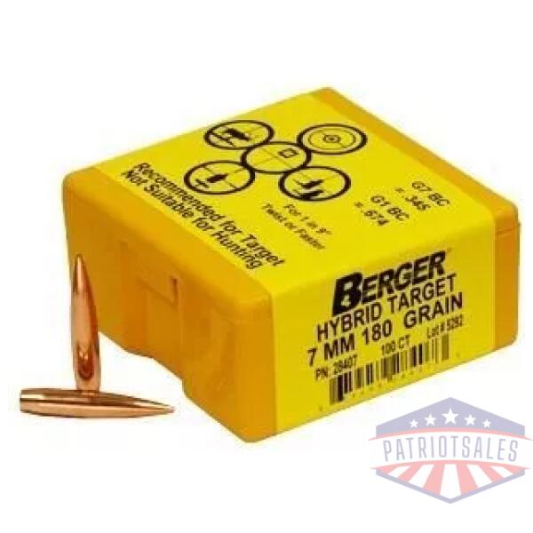 Berger Match Grade Target Bullets 7mm .284″ 180 gr HYBRID TARGET 100/box