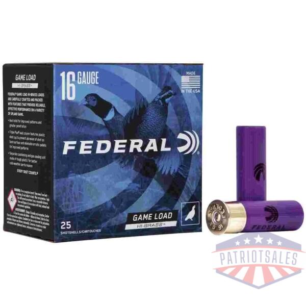 Federal Game-Shok Upland Game – Hi Brass Load – 16ga 2-3/4″ 1-1/8oz. #4-Shot 25/Box