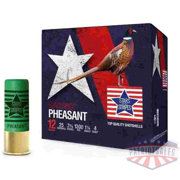 PPU Stars & Stripes Pheasant Load Shotshells 12ga 2-3/4” 1-1/4oz 1300 fps #4 25/ct