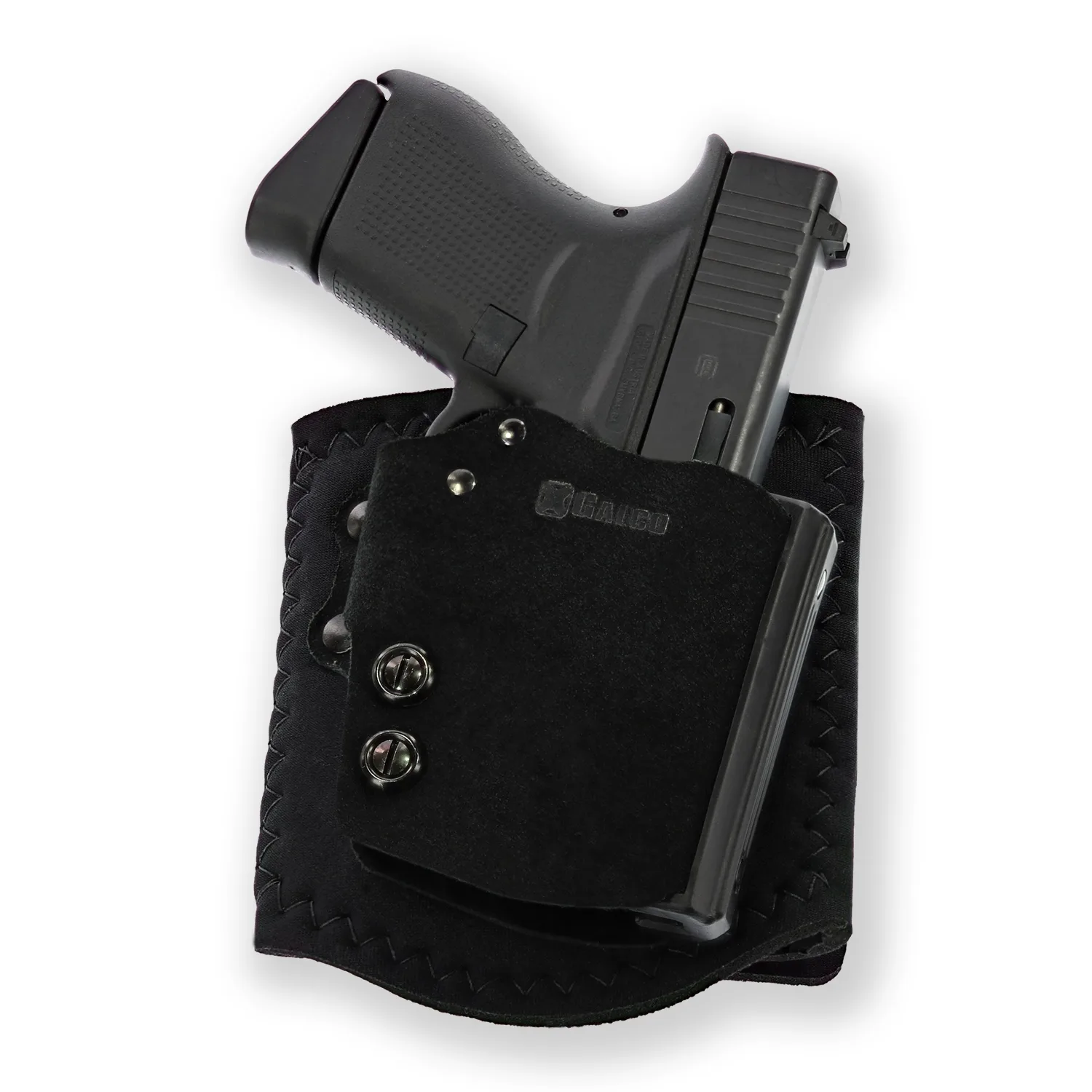 Combining some of the best features of the perennially popular Ankle Glove and the ultra-modern BlakGuard belt holster, the Ankle Guard is a huge step forward in ankle carry. An adjustable internal retention device secures the handgun at the trigger guard. The Ankle Guard’s trench style sight rail easily accommodates virtually all iron sights, and this generously-beveled sight rail also allows a smooth and easy return to the holster. The front of the Ankle Guard is cut low and even allows use of most carry-style optical sights. The Ankle Guard’s neoprene ankle cuff is padded with genuine sheepskin and secured with hook-and-loop closure. A slot in the holster body allows attachment of the optional Ankle Calf Strap. The cuff fits ankles up to 13 in circumference Gun Fit – Glock 45 Gun Fit – Glock 32 Gun Fit – Glock 23 Gun Fit – Glock 19X Gun Fit – Glock 19