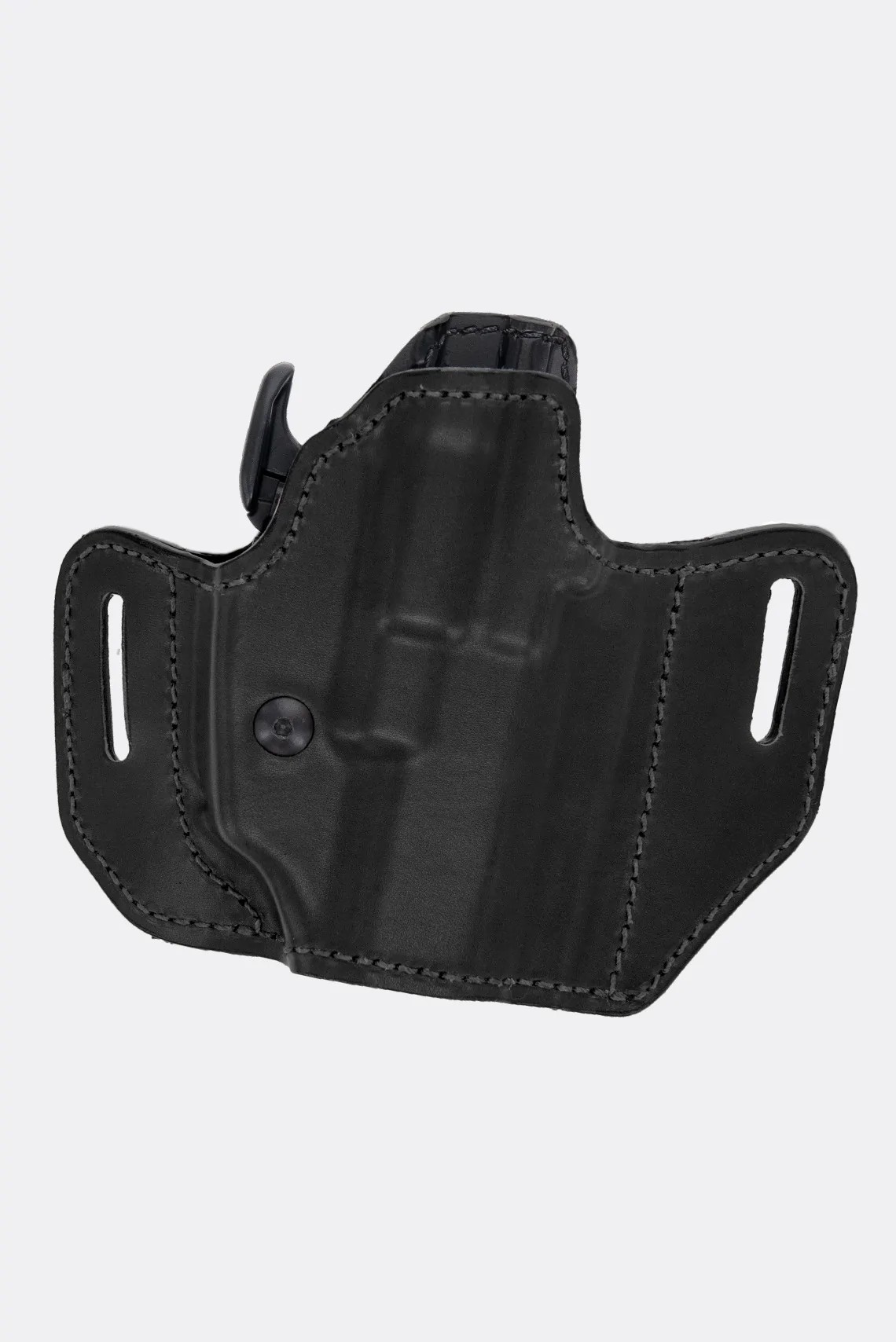 The Bianchi 126GLS Assent is an open-top holster with a high-ride hip carry. The 126 offers a low-profile, contoured body-hugging design with GLS (Grip Locking System), an innovative technology that automatically secures the weapon when holstered, and releases it upon application of the middle finger with a standard shooting grip, for a more intuitive and safer release. Highly versatile, the 126GLS is customizable and adjusts to securely fit over 250 firearms. The 126GLS Assent combines the luxurious look and feel of a premium full-grain leather exterior with a sturdy laminate synthetic liner. The holster is available in Plain Tan or Plain Black finishes and fits 1.5” (38mm) belt widths.