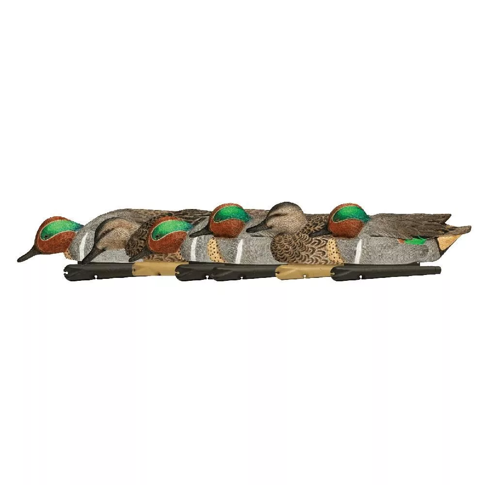 Topflight green-winged teal recreate the personality and body anatomy of a feeding flock of teal. This species-based pack caters to hunters who know exactly what they're after. Each decoy measures 10 inches from breast to tail and features the innovative weight-forward swim keel for natural motion in the water.
