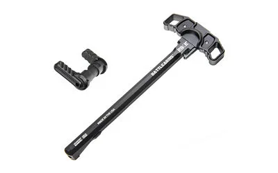 The RACK Ambidextrous Charging Handle was developed by BATTLEARMS to be the finest charging handle ever produced! It is the toughest available for the AR-15 and 9mm AR PCC platforms. The RACK charging handle is simplicity at its best with only three major components. Unlike other charging handles, the RACK makes no contact with the sides of the receiver preventing wear on the receiver and charging handle. Not only is it fast, buttery smooth, it also minimizes wear to the upper receiver with its side-sliding unlocking action. The RACK is no doubt the new heavyweight champion among all other ambidextrous charging handles. Engineered to withstand the abuse of downrange use!