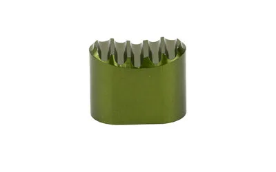 Precision CNC Machined for billet 7075-T6 Aluminum (not 6061) in an anodized finish, the BAD-EMR features a unique, fully solid V shaped button face with horizontal serrations (no through hole). The concave V-Groove button face offers an excellent ergonomic feel and self-centers the index finger as pressure is applied. The horizontal, parallel serrations help slippage in the vertical orientation while minimizing drag in the horizontal direction for finger retraction. The BAD-EMR also features a lightweight skeletonized back to offset the weight gained from the fully solid button face and slightly increased height to equal the weight of the standard mil-spec magazine release (approximately 0.002 lbs). The BAD-EMR is compatible with all lower receivers that accept mil-spec magazine release buttons.