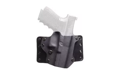 The Leather WING(TM) holster by BlackPoint Tactical is a naturally evolved version of the original KYDEX(R) holster. The Leather WING(TM) is designed to retain the most popular features of a KYDEX(R) holster, while improving the fit of the holster to the body through the addition of leather wings. These wings allow the holster to wrap and fit the contours of the waist. The seamless integration of leather and KYDEX(R) allows for the retention and function of a traditional KYDEX(R) holster, while providing the comfort of a traditional leather holster. The Leather WING(TM) allows the holster to naturally curve with the body, giving a much slimmer and more comfortable fit. This configuration allows for ultimate comfort, reliability, and concealment.