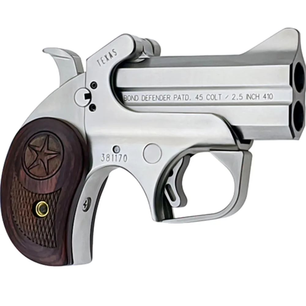 Bond Arms Texas Defender Handgun 2/rd Capacity .45LC/.410 3″ Barrel Silver with Rosewood Grip