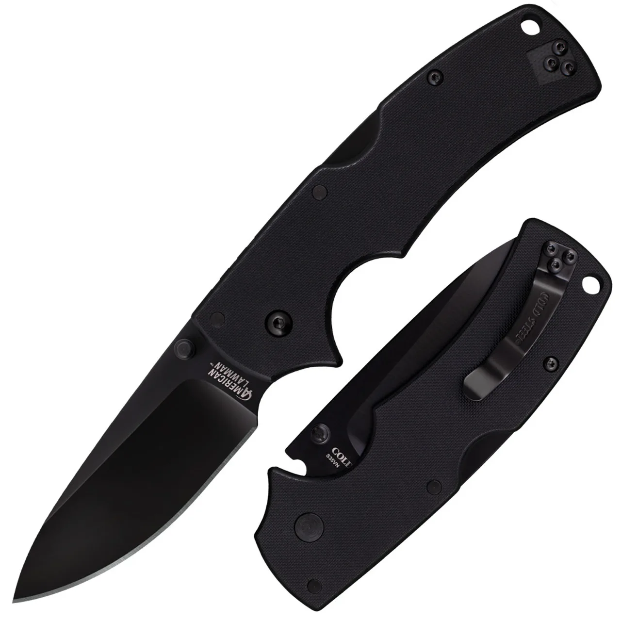 Cold Steel is proud to introduce the American Lawman – named in honor of, and expressly designed to serve, our brothers and sisters in Law Enforcement. Available in two sizes, these rugged knives are designed to perform in the most extreme environments while still remaining comfortable to use and easy to carry. Their drop point blades are big and sharp enough for almost any task while remaining Civilian Friendly in appearance. Made from high performance American S35VN steel and hollow ground to a thin, hand-polished edge, each blade is also DLC (Diamond Like) coated for added endurance and corrosion resistance. The Lawman’s handles are also designed to be as versatile and user friendly as possible. Made from G-10, they are contoured for grip security in even the worst conditions. A lock failure on your folder is incredibly dangerous – but if the lock fails on a police officer’s knife in the line of duty, it could be disastrous! That’s why we have equipped each American Lawman with our Tri-Ad locking mechanism. Designed to withstand terrific impact forces and shock, it has passed some of the most gruesome torture testing in the industry.