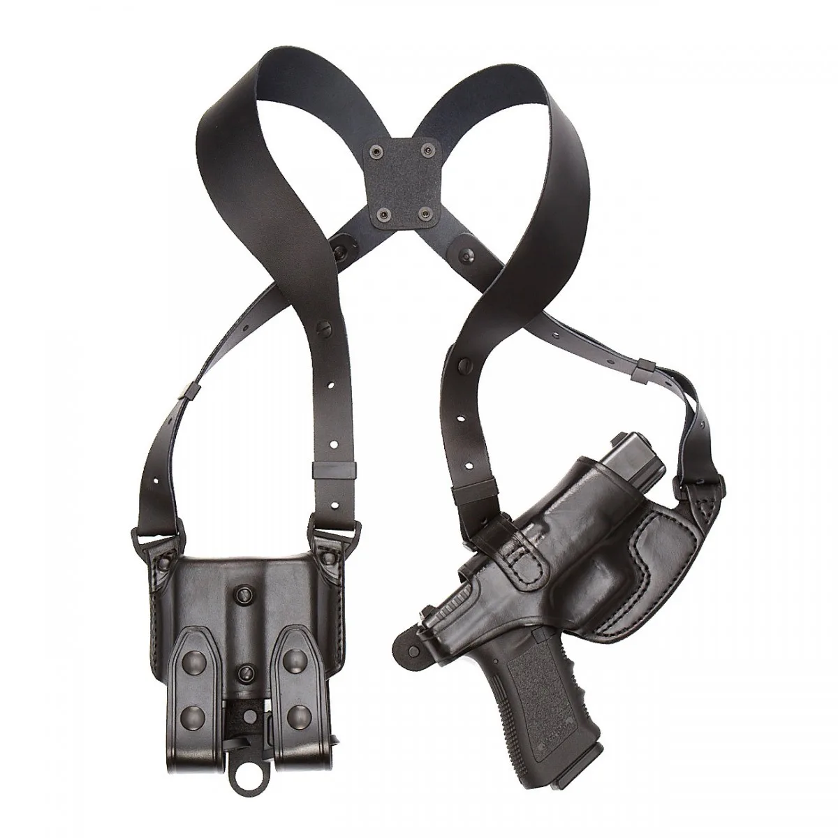 The Aker Leather 101 Comfort-Flex shoulder holster system is the latest version of our first and most popular shoulder holster, developed almost 30 years ago! Each 101 shoulder rig is designed and manufactured in our California factory using materials primarily sourced from the USA. We use a premium full grain leather from North American cowhide, which as a tooling leather is perfect for shoulder holsters since it retains the deep mold of the weapon and magazines, insuring years of use without losing shape as it becomes more comfortable over time.