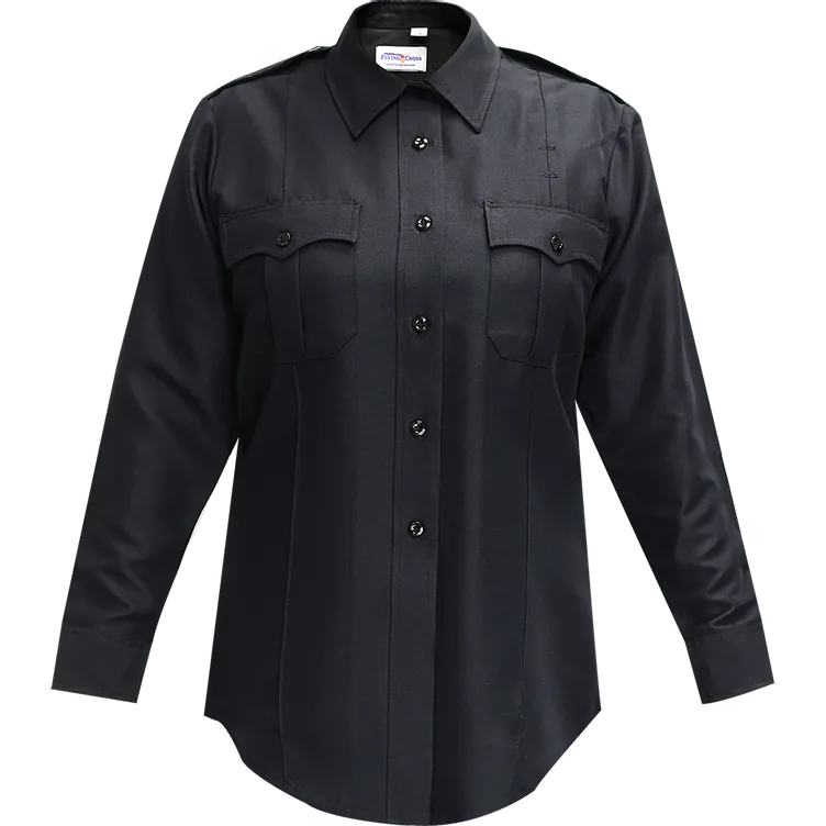 This Command public safety shirt is a long sleeve option for female officers. Made of 7-7.5oz plain weave VISA system 3 polyester, it has a high level of durability to handle tough environments. Shirt has pleated pockets and scalloped flaps with Velcro closures and has a special pencil compartment in the left pocket. The shirt offers several military-style creases and incorporates symmetrical stitching on the shoulder straps for a neat presentation.