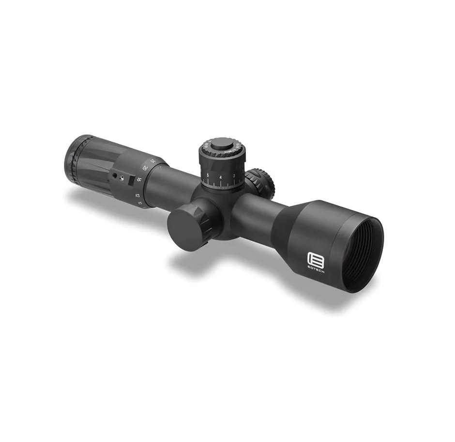 The New Vudu 5-25 x 50 mm is ideal for the short platform rifles. At approximately 11.2 inches in length the 5-25x is one of the shortest first focal plane rifle scopes on the market. The elevation turret includes a push/pull locking system and EOTECH’s EZ Chek Zero Stop allowing for quick adjustments and return to zero. One unique advantage of the short design is that it provides the ability to attach either a clip-on night-vision or thermal device in front of the scope and still allow the user to make adjustments to the device without leaving the scope.