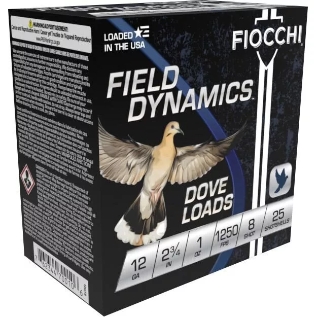 Fiocchi Field Dynamics Dove & Quail Shotshells 12ga 2-3/4″ 1oz 1250 fps #8 25/ct