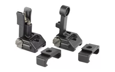 M2 Sight Kit- Griffin Armament is proud to introduce affordable Micro Modular Sights (M2) compatible with Picatinny rail systems. Griffin M2 sights offer an industry first, patent pending, modular base plate system. Constructed from QPQ Treated 17-4 and ordnance grade steel, Griffin M2 Sights were designed to be the correct product for every backup sight application. A shooter can use these durable, low profile sights in a 12 o’clock mounted application while having the flexibility to reconfigure them to ambidextrous 45 degree angle sights using the alternate and available angle plates. This flexibility ensures these sights can be used by anyone and will never end up in a box of undesirable legacy kit. The full M2 deployment kit includes the front and rear sight assemblies as well as both vertical and angled bases for a complete modular system. However, sights and bases are available separately for users who wish to buy parts as needed. The front A2 sight provides elevation adjustment while ensuring maximum aftermarket support for your favorite post, be it tritium, fiber optic, match grade, or otherwise. An extremely low profile, snag resistant, slotted rear windage screw, affords easy but more importantly secure adjustability. Robust spring tension of both front and rear flip up assemblies ensures accurate repeatability every time the sight towers are actuated. Never before has a product in this category offer this degree of flexibility. Griffin M2 Sights have a minimal foot print, and are among the smallest backup sights on the market. For a mere 2 and half ounces your rifle can be equipped with a durable iron sight system, to provide aiming capability in rain, snow, or fog, on or off axis without dependence on batteries or glass.