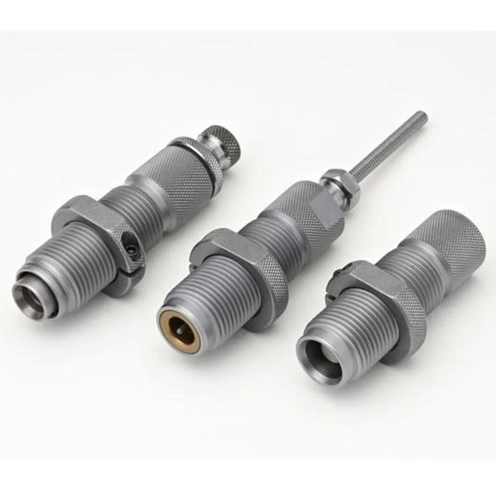 If you are looking for a quick and easy way to taper-crimp and seat your bullets look no further than the Hornady 3-Die Pistol Taper Crimp Die Set. These dies are part of the Hornady Custom Grade line of custom pistol dies which features the innovative non-slip Zip-Spindle design ensuring not only a precise alignment but easy spindle-lock tightening as well.