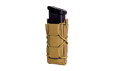 The Generation 2 Pistol TACO is sleeker, lighter, and more versatile than the original. Like the Original Pistol TACO, the Gen 2 Pistol TACO holds 1 pistol magazine, or similarly sized items. Contoured molded sides allow easy insertion of magazines. Integrated shock cord provides adjustable retention. Constructed from laser-cut nylon laminate wrapped over a woven thermoplastic core, Gen 2 TACOs weigh almost 20% less than the Originals. 1/2 inch interval MOLLE on the back of the TACO allows for both MOLLE and belt mounting options. With the addition of an HSG OTR Cover accessory, any Gen 2 TACO can be set up covered or open-top.