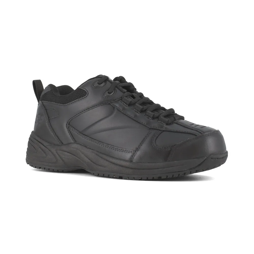 The Jorie Street Sport Jogger features an easy-care leather upper, moisture wicking nylon mesh lining, EVA cushion removable footbed with sponge rubber heel wedge, and SureGrip Plus slip-resistant rubber outsole with an EVA cushion midsole. The RB110 is metal-free, soft toe, with electrical hazard protection.