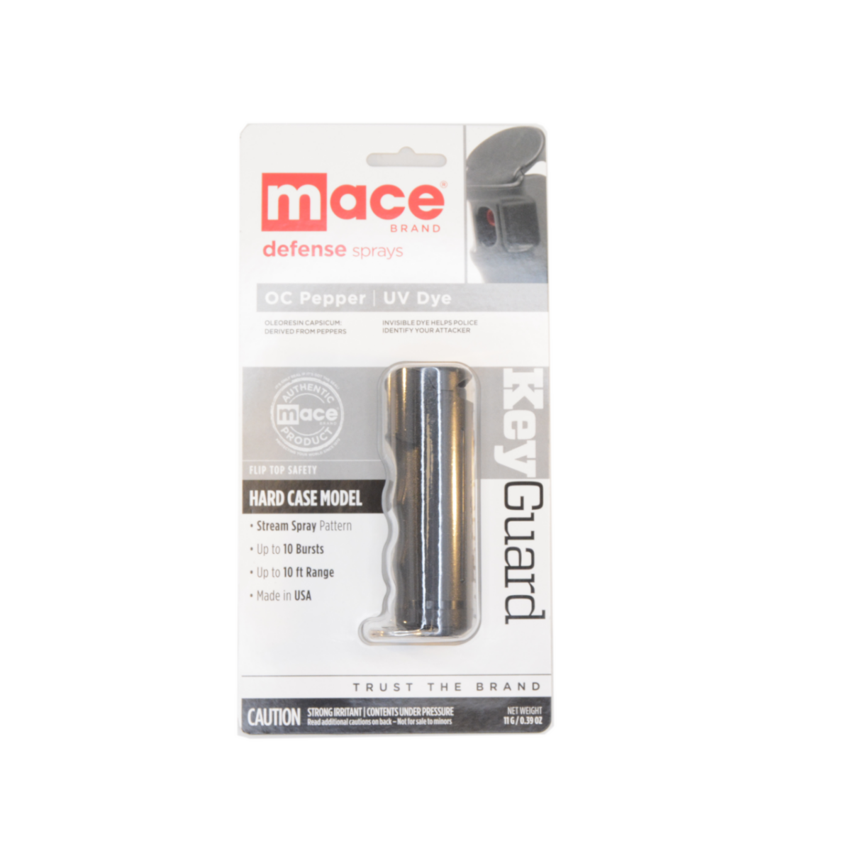 The KeyGard pepper spray by Mace features a key ring clip for easy access, and contains a 10 percent pepper spray formula with a 1.4 percent concentration of capsaicinoids. The formula includes UV marking dye for easy identification of assailants, and can reach up to 10 feet. Each unit contains 5 to 15 bursts.