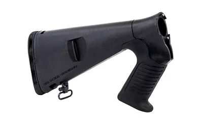 Developed to meet the needs of law enforcement and military operators, the rugged Urbino Tactical stock features a ,tactical, 121/2 inch length of pull (LoP), Santoprene rubber grip, Limbsaver buttpad and a variety of flexible sling mounting options. A shorter stock is necessary for use in tactical applications, especially with body armor. The Urbino Tactical stock is durable, easy to shoulder and will not slip. The Urbino Tactical stock is also comfortable, thus reducing operator fatigue, especially during prolonged training and qualification sessions. The Santoprene grip is padded at the rear to reduce recoil impact against the web of the operator’s hand and the Limbsaver buttpad substantially reduces felt recoil. All Urbino Tactical stocks are made in the USA, and include Benelli style rear sling loops for 11/4 inch sling webbing. In addition, a hole at the lower rear of the stock accepts QD style sling swivels (not included). Urbino Tactical stocks can also be fitted with any of a variety of optional steel pocket sling mounts similar to those offered for Remington telescoping stock adapters. Pocket sling loops, hook loops and push-button sling swivel mounts that fit securely between the Urbino stock and the shotgun receiver.