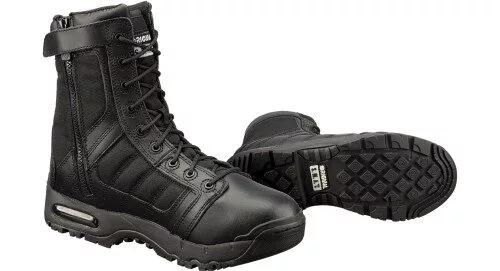 This boot uses air technology to increase the level of comfort and cushioning for long shifts on the hard surfaces of the urban battlefield. Equipped with only non-metallic components, the Metro Air 9 Side-Zip is the ultimate airport-friendly law enforcement uniform boot.