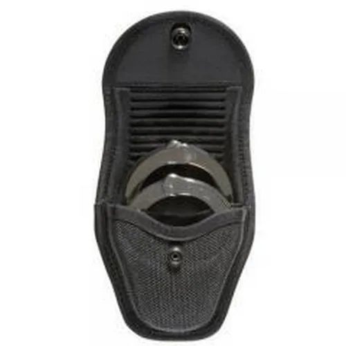 The Model 7317 AccuMold Double Handcuff holds two pairs of standard handcuffs or similar. Made from molded and contoured trilaminate construction with Coptex knit lining. The 7317 is available with hook and loop or hidden snap closure and conveniently fits 2 in. (50 mm) or 2.25 in. (58 mm) duty belts. Handcuff Fit: Hiatt 2010-H Handcuff Fit: Hiatt 2015-H