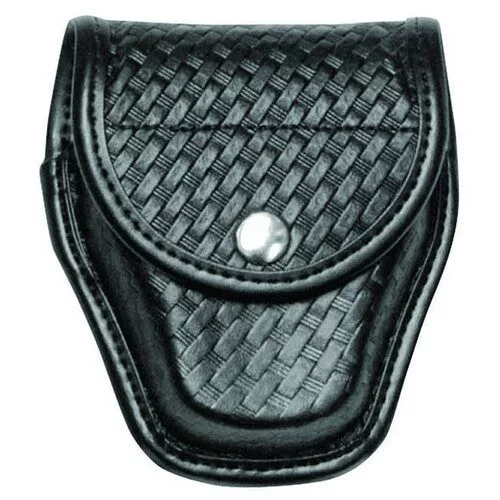 The Model 7917 AccuMold Elite Double Handcuff Case holds two pair of standard handcuffs or similar. Molded and contoured trilaminate construction with a synthetic leather-like finish, this unit is designed to conveniently fit 2 in. (50 mm) or 2.25 in. (58 mm) duty belts.