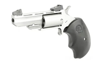 The NAA Black Widow Revolver evolved from their popular .22 Magnum frame series and includes the time tested design characteristics that are incorporated in all NAA Mini-Revolvers. The result is enhanced stability and accuracy for the shooter. The Black Widow has a Heavy Vent Barrel, a Bull Cylinder, Oversized Black Rubber Grips and comes with either Adjustable Marble Arms Sights for elevation or Fixed Low Profile Sights, also by Marble Arms. 5-Shot capacity.