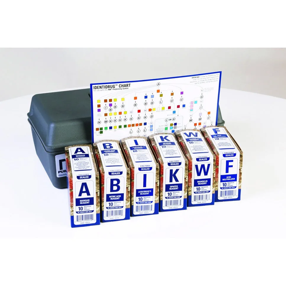 NIK Fentanyl testing kit contains 5 boxes of tests to complete the testing sequence plus a box of neutralizer. NIK recommends a testing sequence for the presumptive detection of Fentanyl. The use of multiple tests helps eliminates the chance of erroneous presumptive identification of an unknown substance. Kit contains NIK tests A, B, I , K and W to complete the testing sequence. A box of neutralizer is also included. When testing unknown white powders officer safety is of the utmost importance.