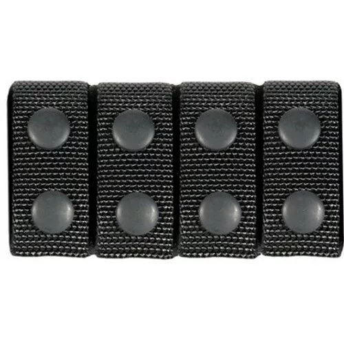 These tough belt keepers from Blackhawk are designed to provide a more secure connection between the inner and outer layers of a law enforcement duty belt. They measure 2.25 inches, enough to fit around a standard-width design, and provide additional stability to prevent it from shifting as you move. The keepers are made from durable nylon, which resists stretching, abrasion and fraying to effectively withstand the stresses involved in tactical use. They fasten together using convenient snaps, which provide reliable security while remaining extremely easy to undo when you need to take the belt off.