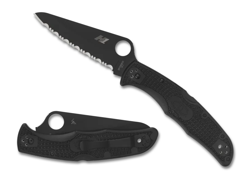 A dynamic combination of the third-generation Endura one-piece handle design and the ultra-corrosion-resistant properties of H-1 steel, the original Pacific Salt was an incredibly capable full-service folding knife. The original black-bladed model endured extensive military testing to become an issue item in aircrew survival kits. Following that proud tradition, the Pacific Salt 2 Black Blade includes a high-traction Bi-Directional Texture pattern, enhanced handle ergonomics, and a versatile four-position pocket clip. In addition to these features, this knife integrates an H-1 blade with a linerless handle and a non-reflective titanium carbonitride (TiCN) blade coating and matching black coatings on its clip and hardware. This knife was born to perform in and around the water.