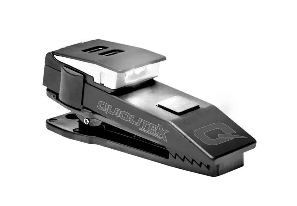 QuiqLiteX High Power Dual White LED is USB rechargeable and provides from 5 up to 200 Lumens of light on demand. The Dual White LED configuration is designed for normal reading, writing and maneuvering in the dark without having to hold a flashlight in your hands. QuiqLiteX Dual White LED allows for single or dual LED activation for situations when extra light is required. The first push of the On/Off button will activate a single white LED at 20 Lumens to help preserve your night vision. If more light is required, simply push the X-BOOST button to increase up to 100 Lumens per LED (200 Lumens). The QuiqLiteX is equipped with a 10 minute auto-off battery saving timer and continuous Safety Strobe mode, plus QuiqFlare which provides visibility from over 1 mile away. Now includes a new Pupil Gauge located on the back of the QuiqLiteX.