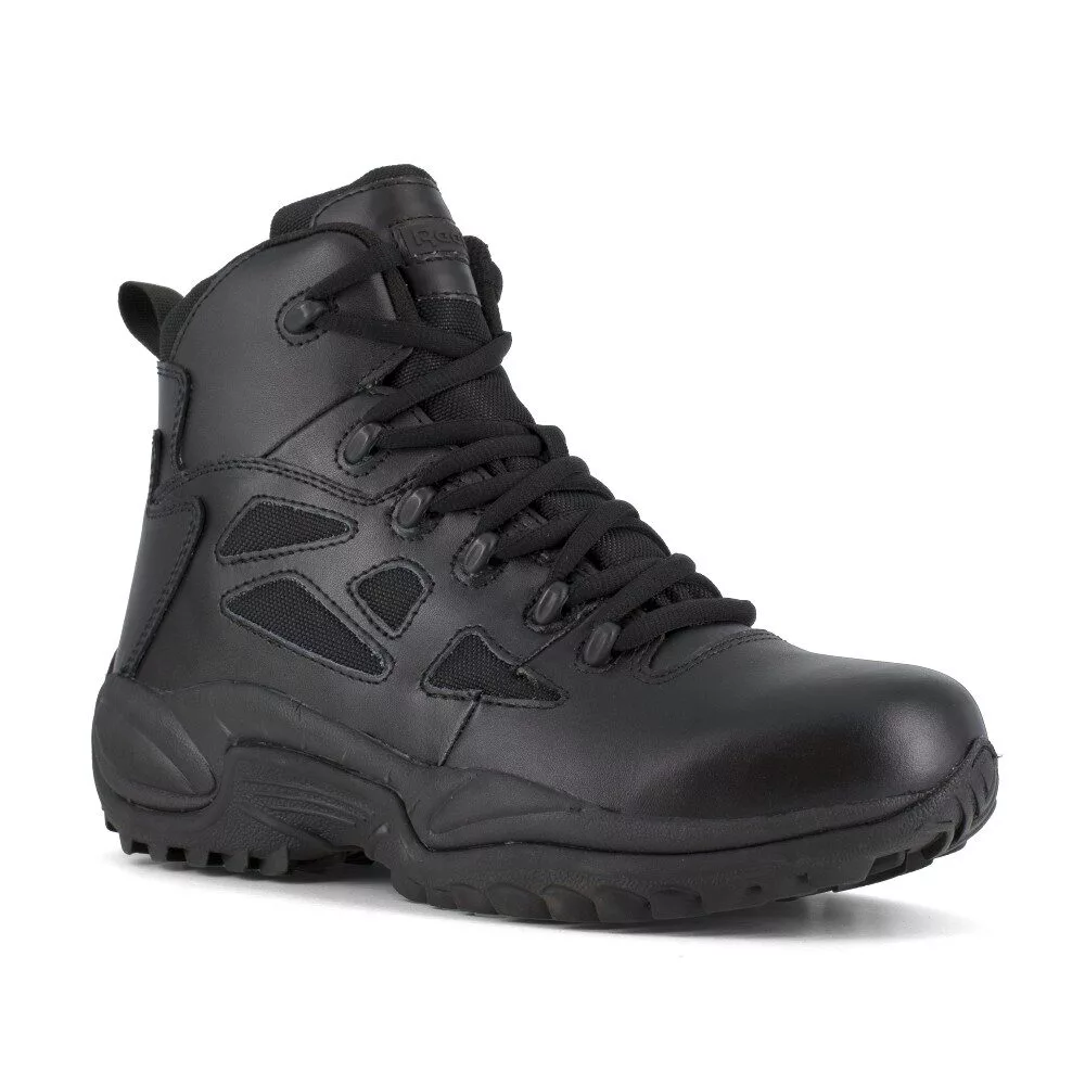 The Rapid Response is a field-proven tactical boot with advanced comfort technology and durability for modern first responders, law enforcement officers, and military professionals. Featuring a leather and ballistic nylon upper, moisture wicking nylon mesh lining, mountain trail rubber bottom, EVA cushion midsole, embedded shock eliminator heel cushion, and a Foot Force F2A removable polyurethane cushion footbed. The RB8678 includes a soft toe, side zipper, and provides electrical hazard protection.