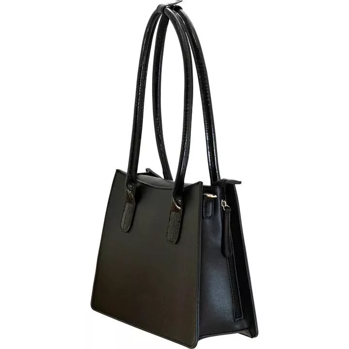 The "Cameleon Myla" concealed carry purse is a medium-sized tote shoulder bag tailored for the stylish woman who values both fashion and personal safety. Crafted from high-quality vegan leather with a sophisticated croc print handle this purse seamlessly combines elegance and functionality. Discreetly designed for concealed carry the ambidextrous gun pocket is strategically placed on the side maintaining a low-profile appearance. The Chic Defender is available in two timeless colors – ivory and black – allowing you to choose the one that complements your style. With a detachable and adjustable shoulder strap the tote easily converts into a crossbody bag offering versatility and comfort. The magnetic closure on the main pocket ensures quick and easy access while the interior features two open pockets for organizing small items such as your cell phone or keys. The Chic Defender is not just a concealed carry purse; it's a fashion-forward accessory that empowers women to prioritize personal safety without compromising on style.