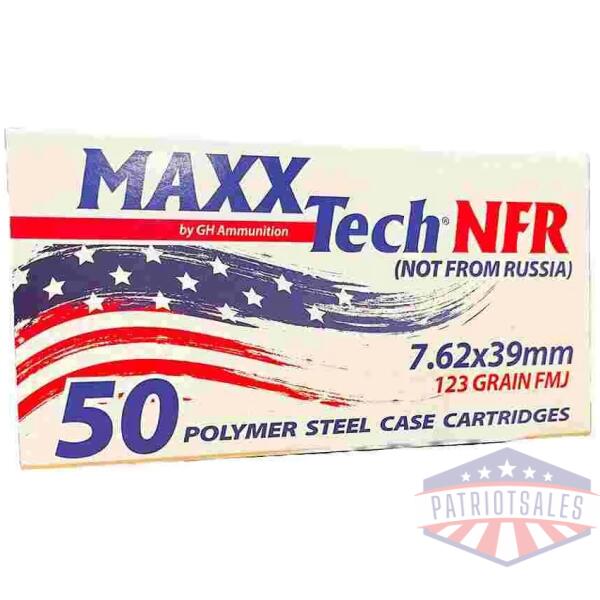 Maxxtech NFR Steel Case Rifle Ammunition 7.62x39mm 123gr FMJ Boxer Primed 2330 fps 50/ct