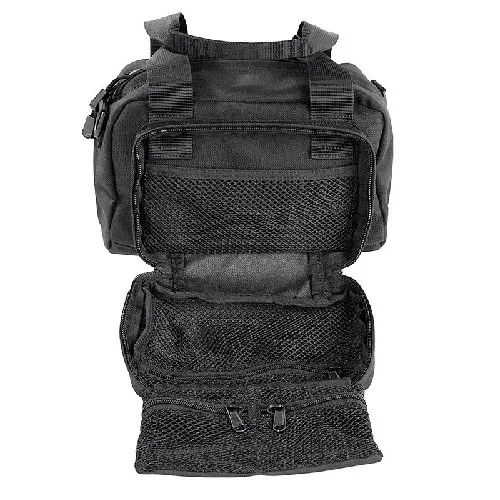 The small kit tool bag in black from 5.11 Tactical is a robust bag that makes customizing storage easy to do. Whether you need a tactical bag or just something to make carrying and storing your screwdrivers and wrenches easier, you will appreciate the versatility of this bag. A fold-out organizer offers many zippered mesh pockets that make keeping your essentials in plain sight easy to do. A roomy main compartment is great for storing heavy items and a pocket on the rear provides room for plenty of extra accessories. 5.11 used ultra-durable, weather resistant nylon to create this bag and ensures this bag is great for use in any environment.