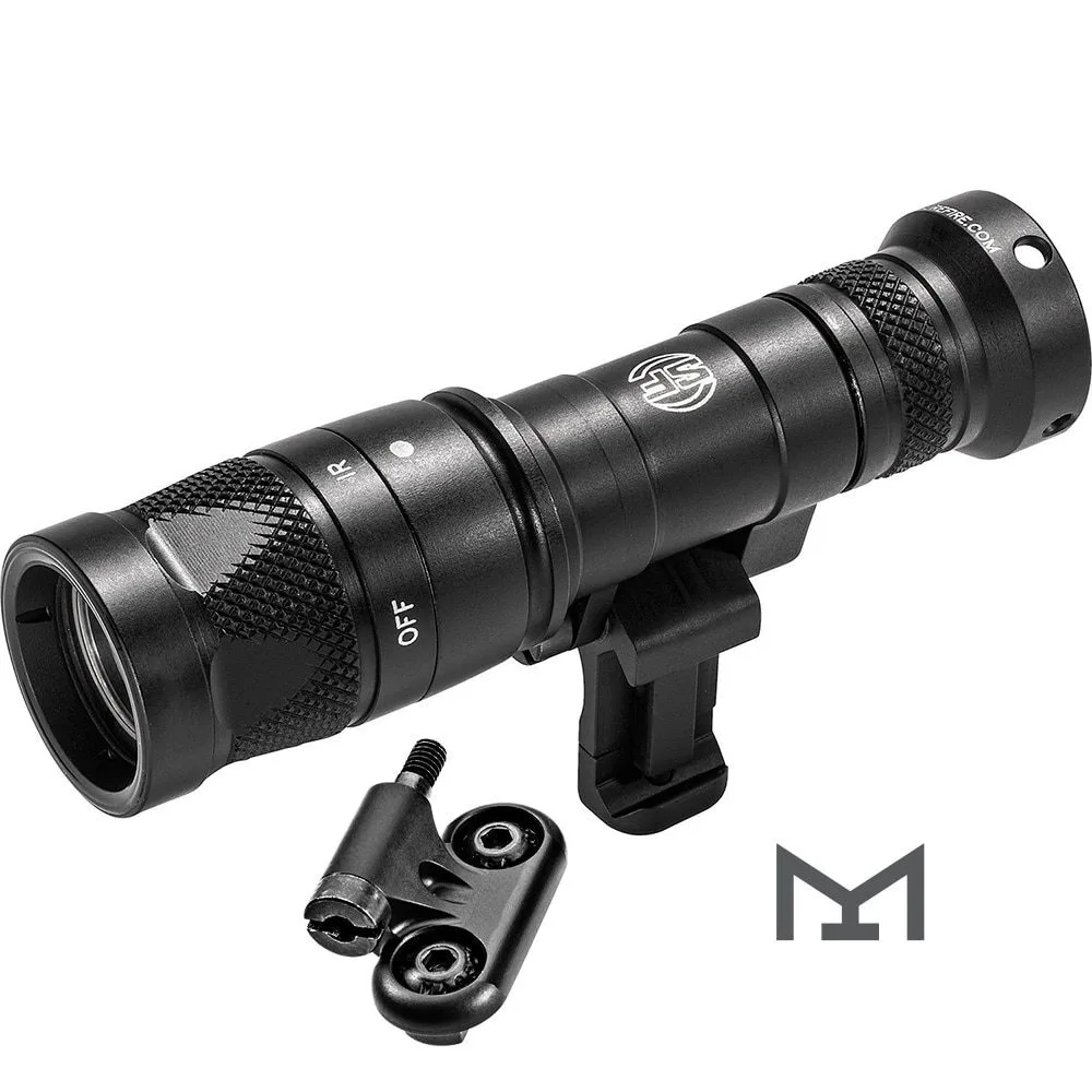 The Mini Scout Light Pro IR is the newest 3-volt model in our line of multi-spectrum Scout Lights. Powered by a single 123A lithium battery, it produces 250 lumens of brilliant white light or 100 mW of invisible infrared illumination for use with night vision devices â with no need for IR filters or spare lamps. It features SureFire’s new Low-Profile Mount (LPM). which delivers unprecedented versatility by allowing the user to optimize the light’s position relative to the rail. Rugged and reliable, the LPM easily and securely attaches to any MIL-STD-1913 or M-LOK rail. To switch between white light, disable, and infrared modes you simply twist the front knurled portion of the bezel. In either mode, the Mini Scout Light Pro IR’s TIR lens produces a tight beam suited for close- to medium-range applications. Constructed of high-strength aerospace aluminum with Mil-Spec hard anodizing for superior toughness and corrosion resistance, it’s built to withstand the rigors of combat and give you an unfair advantage.