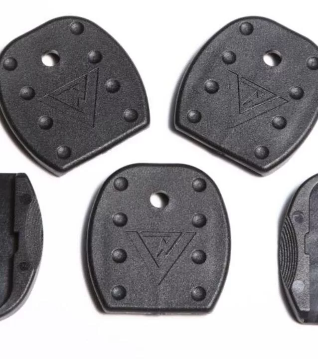The VT Magazine Floor Plates are flared with grooved non-slip scallops for positive finger purchase. Stubborn magazines are easily extracted whether muddy caked with ice or sand. Great for one handed reloads too..just hook magazine floor plate under your belt and extract quickly. Molded dimples allow for easy marking and numbering of magazines.