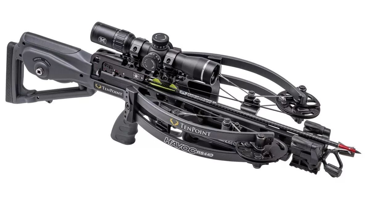 Fast and compact the Havoc RS440 hunting crossbow measures just 26.5 inches long and shoots 440 FPS with its INCLUDED 400-grain arrow. Featuring the ACUslide SILENT cocking and SAFE de-cocking system and one of the industry’s best 3.5-pound two stage trigger it measures just 7.5-inches wide and includes 1-inch of length-of-pull adjustment. Features the EVO-X MARKSMAN ELITE SCOPE – a variable speed scope designed for crossbows up to 500 FPS includes a customized reticle and external target turrets for accurate shooting out to 100-yards.