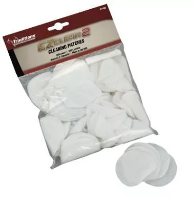 Traditions EZ Clean? 2 Cleaning Patches. White round cotton cleaning patches. Packaged in a convenient zip-close bag. Great for use on all types of firearms. .45-.54 caliber 100 per bag.