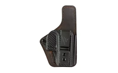 Versacarry’s Compound Custom holster is perfect for those looking to carry everyday and maintain comfort. The holster has a distressed brown leather back paired to a rigid polymer front. The holster features a tension adjuster to find the perfect fit and a waistband clip to securely carry your holster.