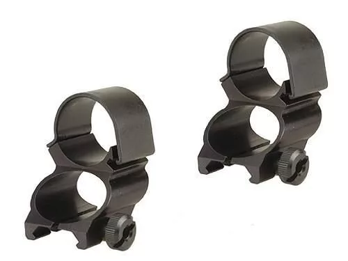 The Weaver Detachable See-Thru Rings enable you to use your scope or iron sights for faster target acquisition. The rings come with a square cross lock bolt which fits securely with all Weaver bases. There is a steel strap for additional strength. The aluminum saddle reduces the overall weight.