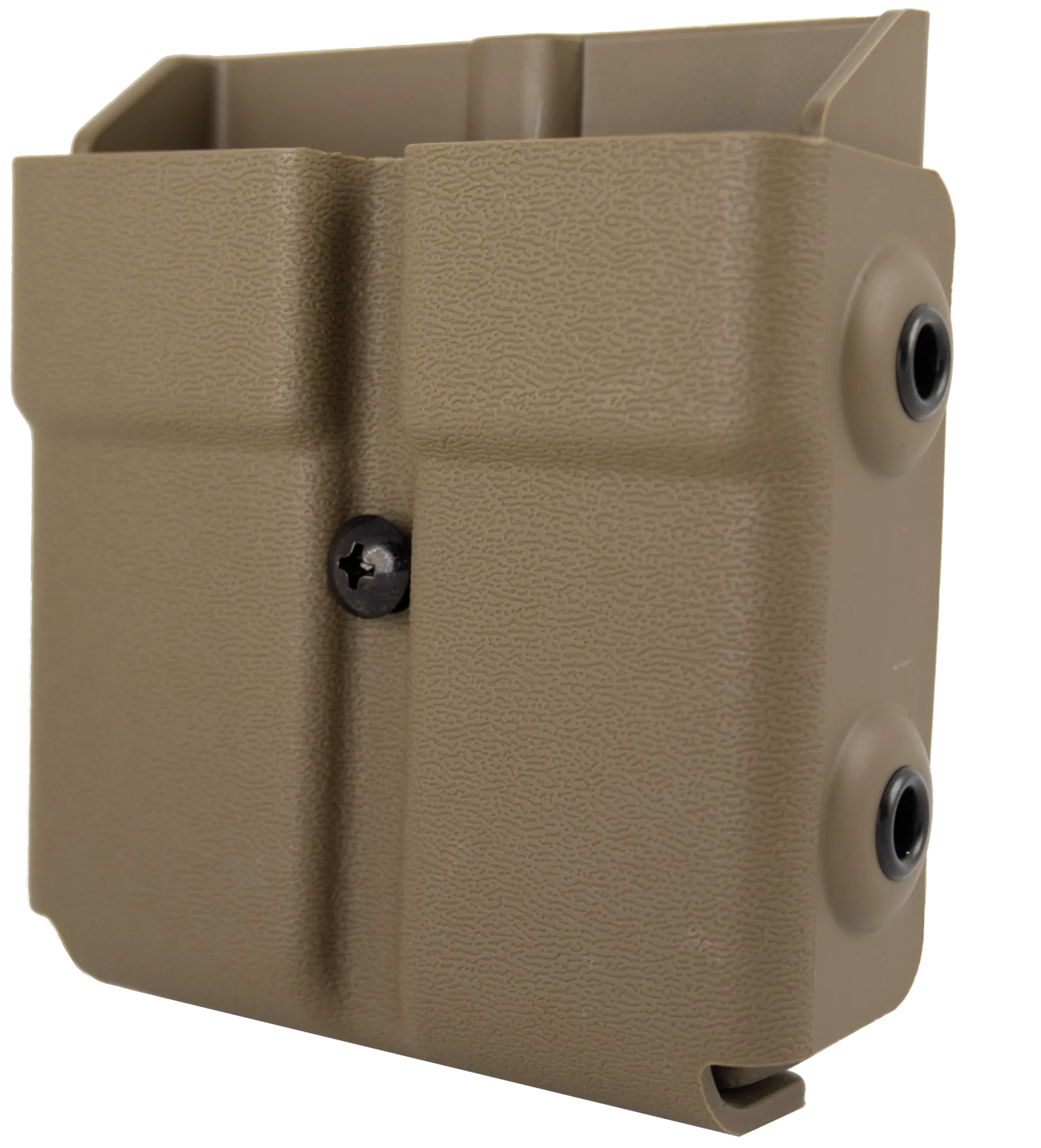 Slimline ruggedized double pistol mag case for double stack Glock 9mm and .40 caliber mags with bullets facing your centerline for a traditional orientation method of carry. Fits Glock doublestack 9mm or .40 caliber magazines. Compatible pistol models include: G26, G27, G19, G23, G17, G22, G45, G34. Does not fit non-Glock mags.